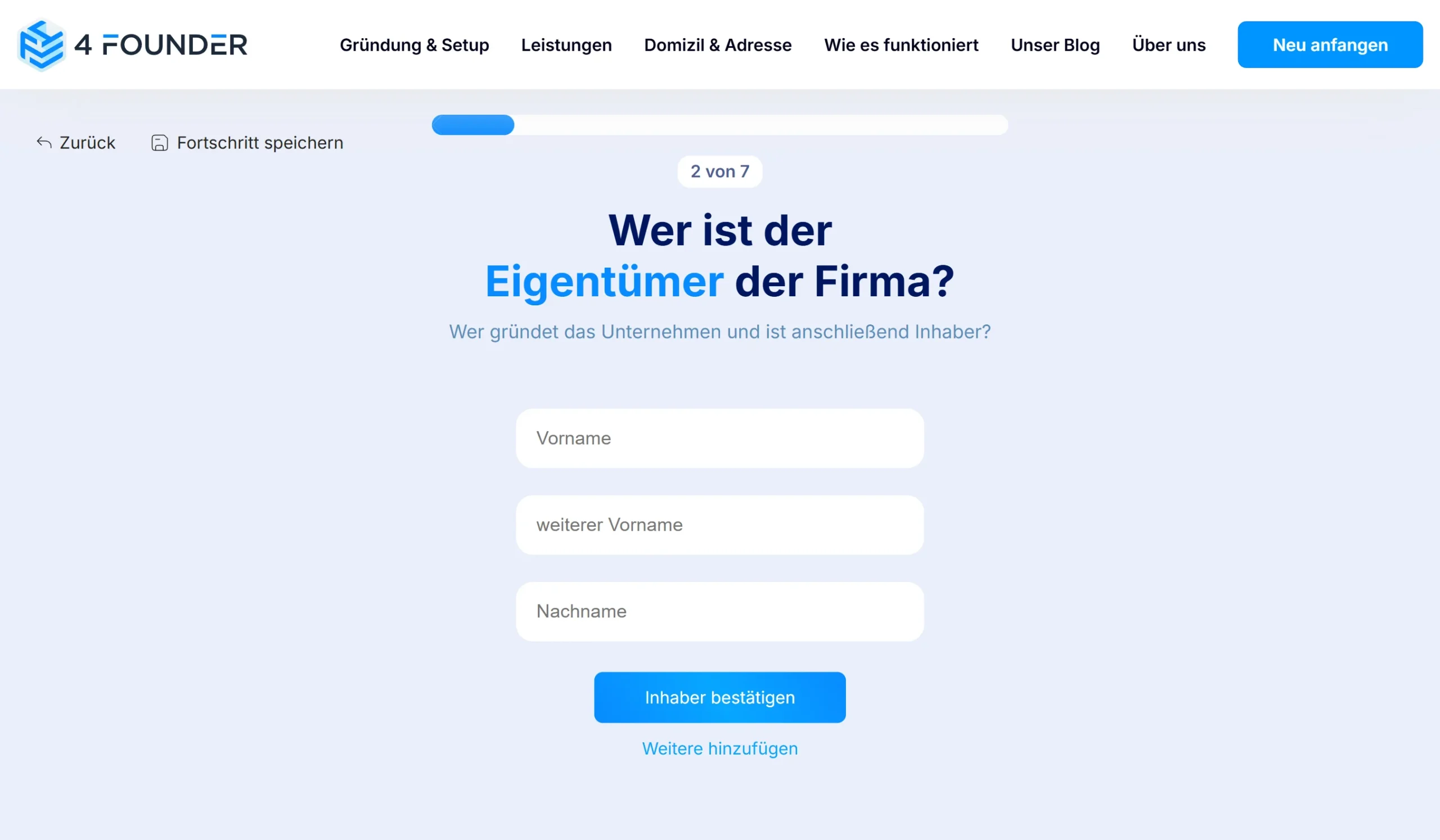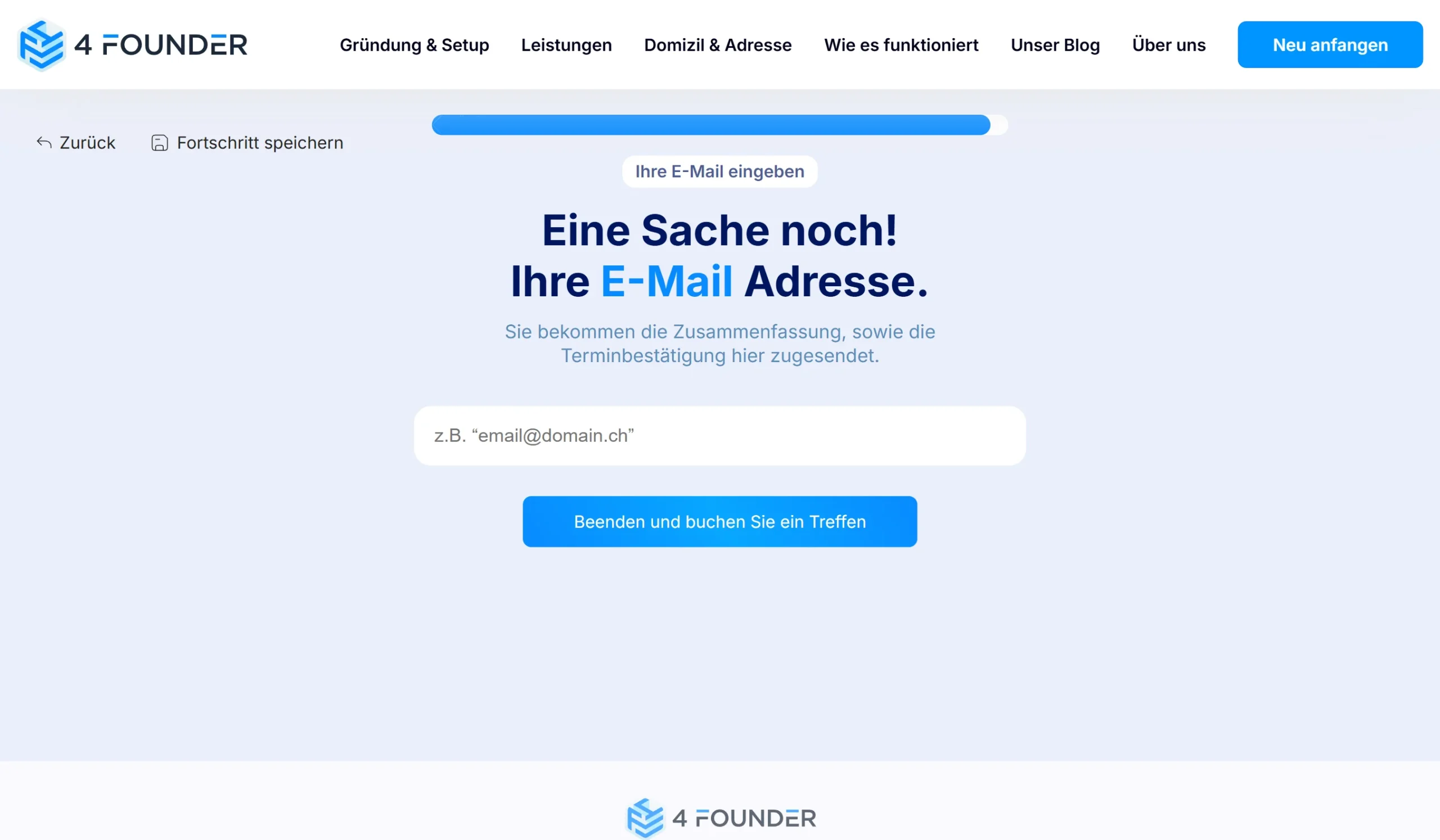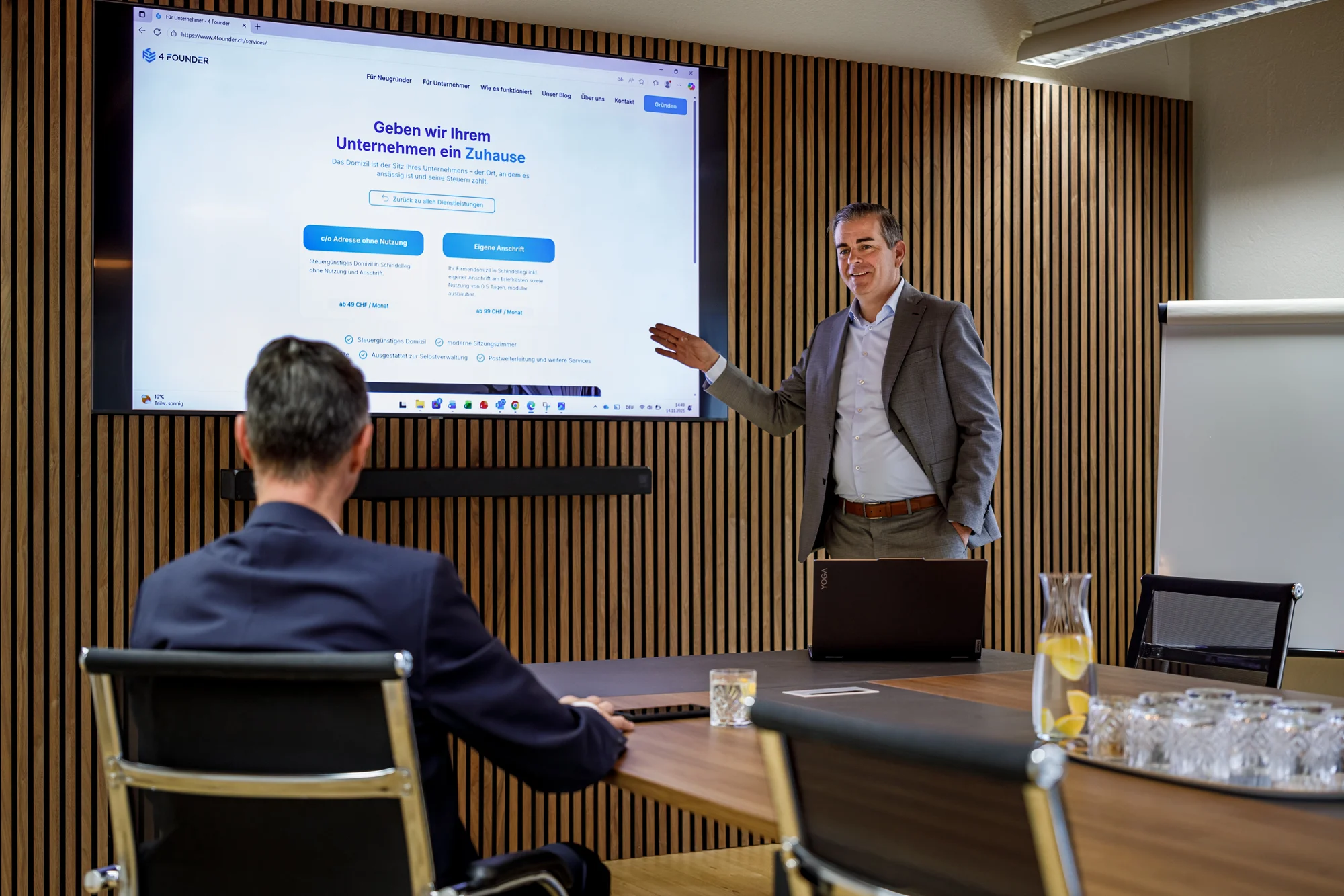 Entscheiden Sie, ob Sie ein Domizil bei 4Founder nutzen oder eine eigene Adresse verwenden. Falls ausreichend, wählen Sie die c/o Adresse. Das steuert Postlauf, Außenauftritt und behördliche Zustellungen.